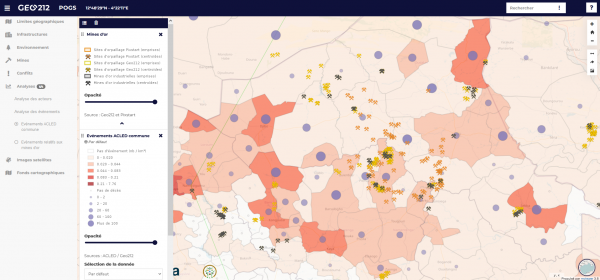 Lors du webinaire mviewer, Geo212 a présenté la plateforme Web-SIG POGS (Prototype Of the Observatory for Gold and Security) : un prototype d'observatoire des pratiques de l'orpaillage au Liptako Gourma et de son impact sécuritaire.